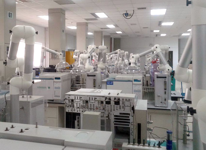 实验室工作可能产生有害气体。必须做好通风设施,提供安全舒适的工作环境。自然通风是一种常用的通风方式,其优点是不消耗能量,但当空间大、效果差时,能引导气流向某一方向流动,从而提高通风效果。机械通风是一些需要洁净实验环境的实验室的必要手段。这些实验室需要安装排气扇进行强制换气。在房间的进风口安装合适的过滤器,以阻挡灰尘和其他干扰物。产生有害气体的实验应在通风柜中进行。它具有不回流和气体隔离的功能。这是实验室建设中的一个重要问题。在寒冷地区,冬季气温较低,必须加装暖气系统以维持适当的室温;此外对温湿度有较高要求的,还需要考虑安装空调,进行空气调节。